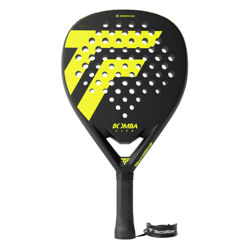 The Tecnifibre Bomba Lite is a lightweight padel racket designed for players seeking explosive power with enhanced manoeuvrability. Featuring a diamond head shape and enlarged headsize, it promotes a higher sweet spot to support aggressive overheads and attacking play. The lighter weight construction improves handling speed and reduces arm fatigue, making it more accessible than the heavier Bomba models. A reinforced, closed core increases face deformation for strong rebound power, while X-Speed Technology air channels optimise aerodynamics. The Rough Skin 3D sandblasted surface enhances ball grip for added spin.