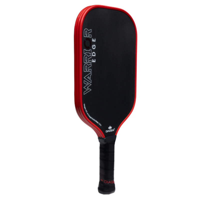The Diadem Warrior Edge is a pickleball paddle designed for players seeking controlled power, spin and consistency in competitive play. Built with a 16 mm polymer honeycomb core and an etched carbon fibre face, it delivers a soft, stable response with excellent dwell time for resets and dinks. The Edge shape widens the sweet spot for greater forgiveness, while the Aero Guard edge system protects the frame without reducing manoeuvrability. A mid-weight build keeps the paddle quick at the net and reliable from the baseline.