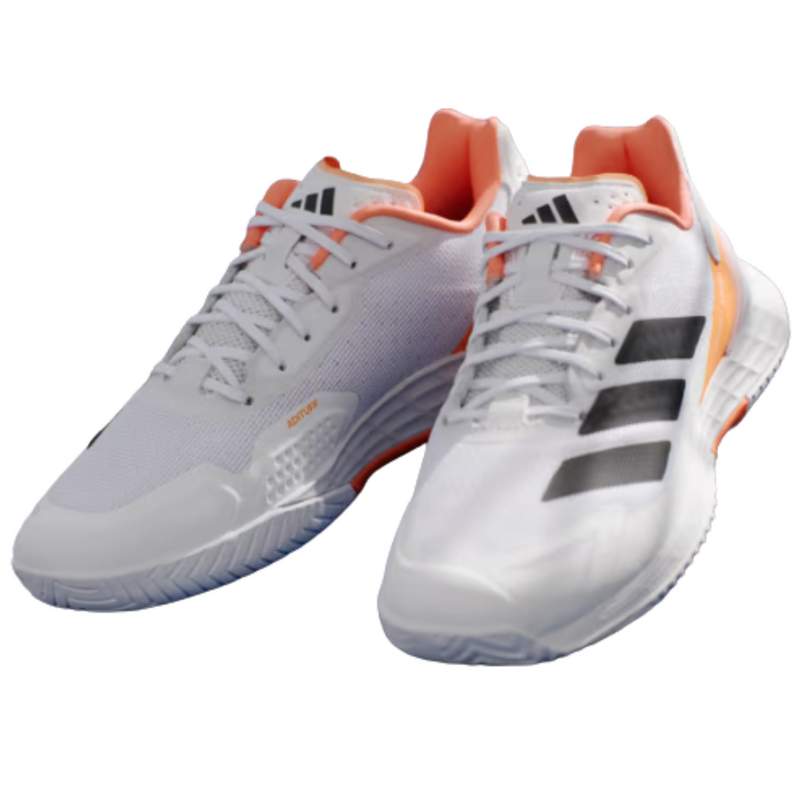 Adidas Mens Defiant Speed 2 Tennis Shoes - Cloud White / Core Black / Lucid Orange